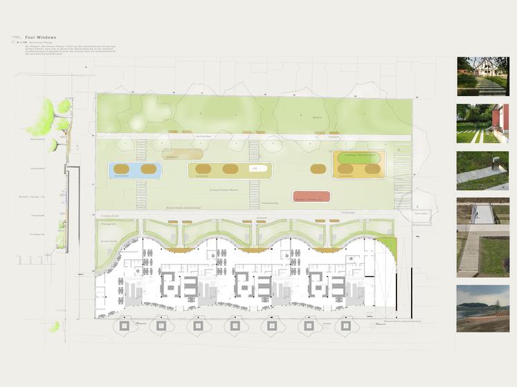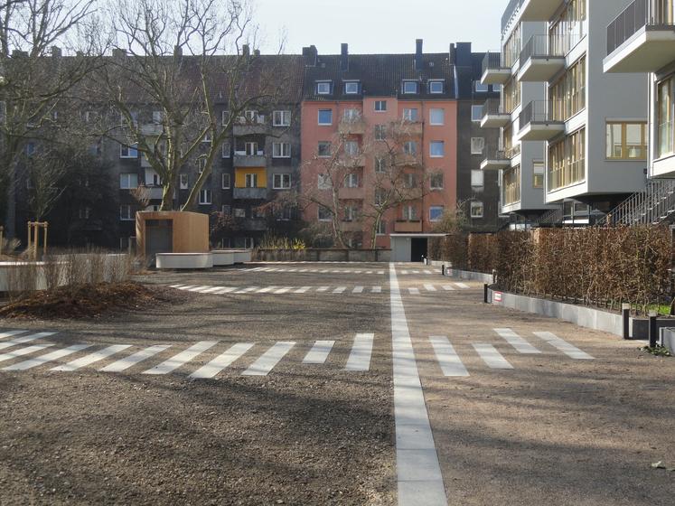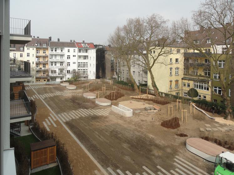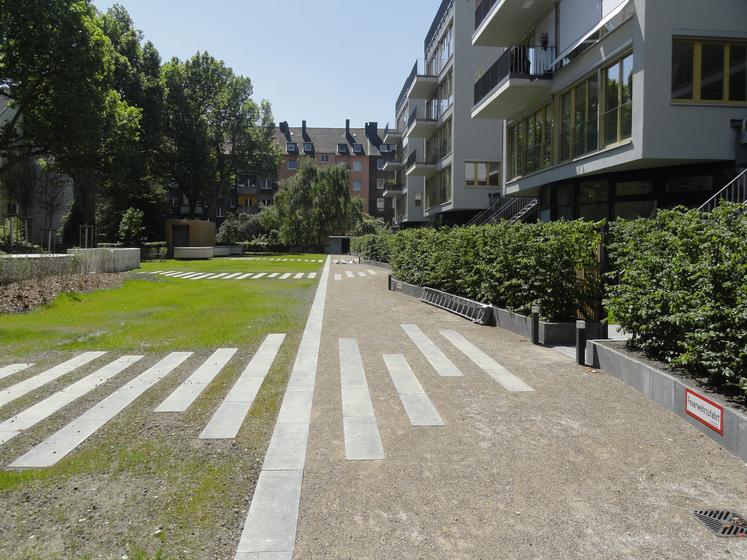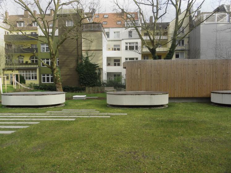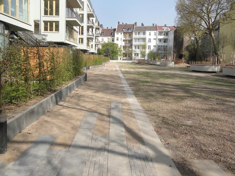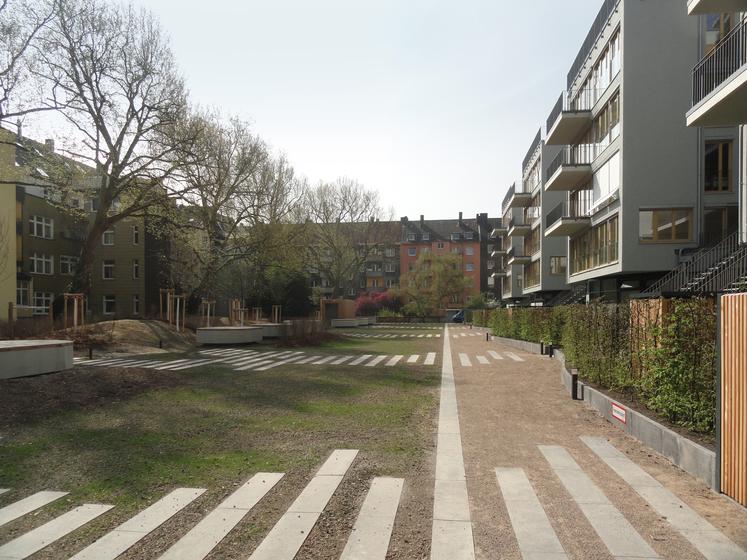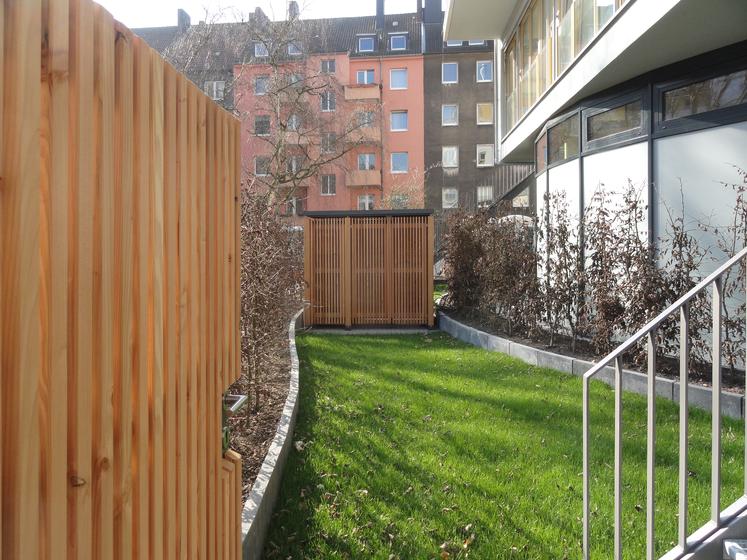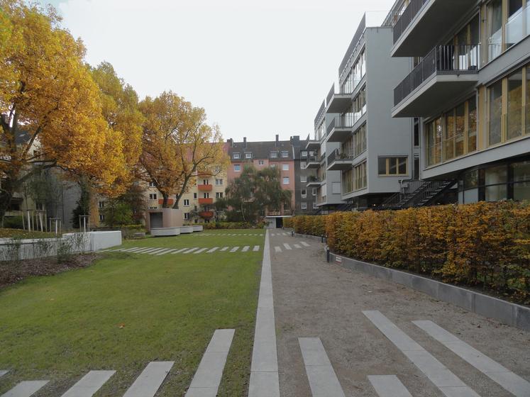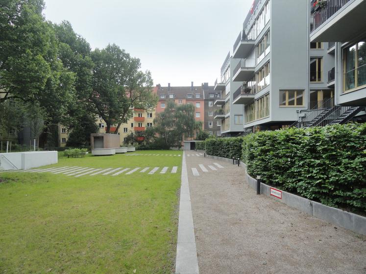 Die Albert Sevinc Planen und Bauen GmbH hat in der Lindemannstraße 6-8 den Neubau eines Wohn- und Geschäftshauses "Four Windows" mit straßen- und gartenseitigen Außenanlagen, die teilweise auf der Tiefgaragen- bzw. UG-Decke liegen, realisiert. Zur Auswahl des Freianlagenplaners wurde ein Wettbewerb vorgeschaltet.