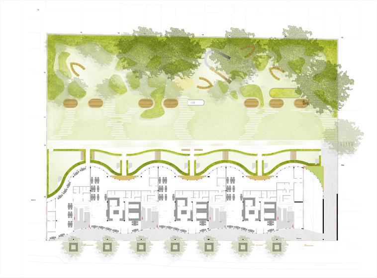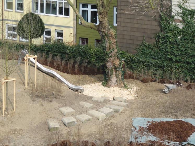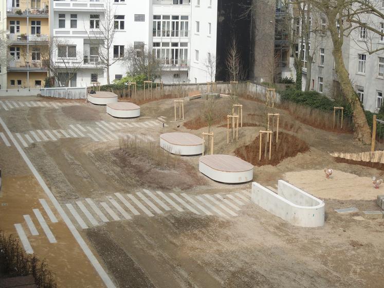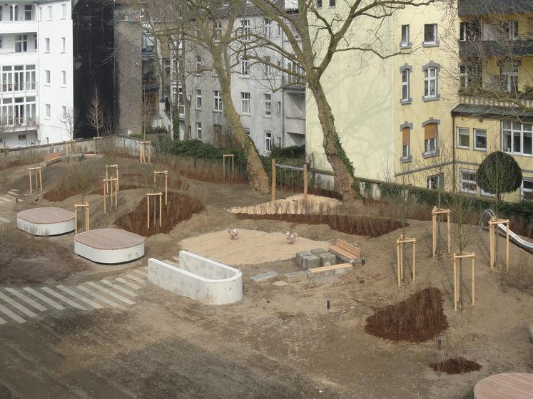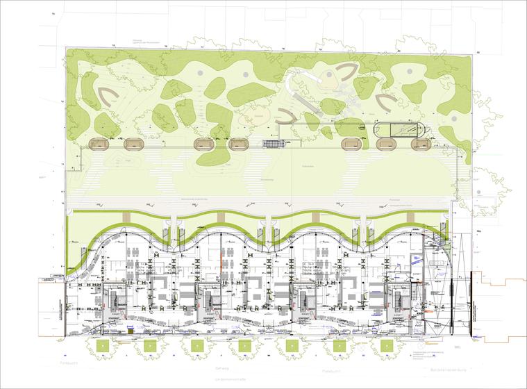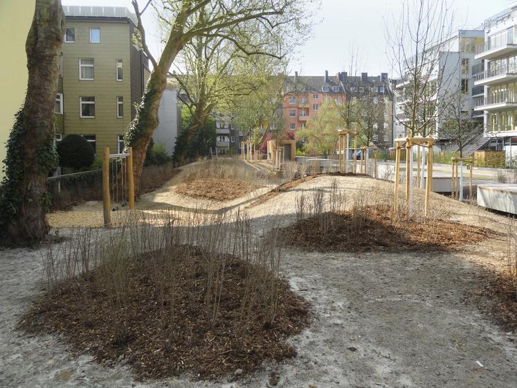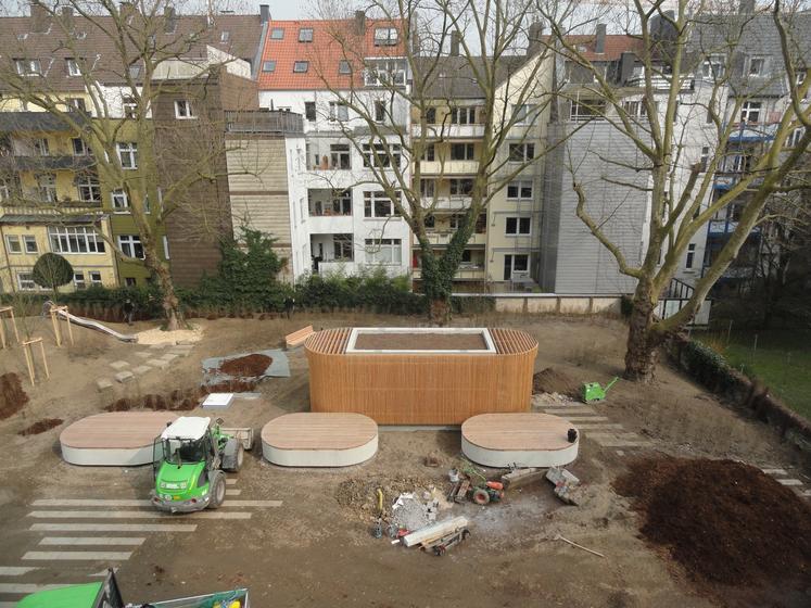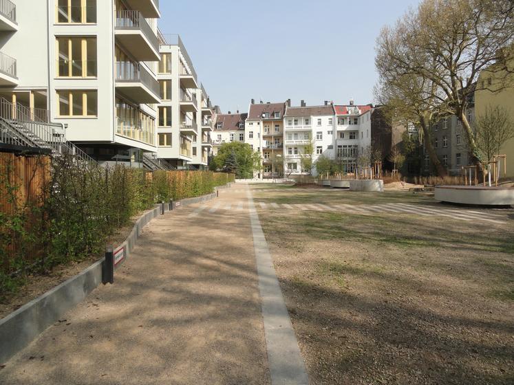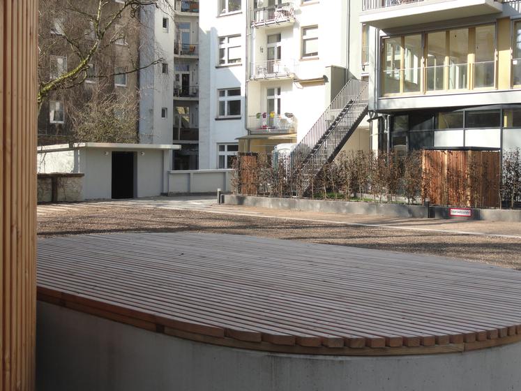 Die Albert Sevinc Planen und Bauen GmbH hat in der Lindemannstraße 6-8 den Neubau eines Wohn- und Geschäftshauses "Four Windows" mit straßen- und gartenseitigen Außenanlagen, die teilweise auf der Tiefgaragen- bzw. UG-Decke liegen, realisiert. Zur Auswahl des Freianlagenplaners wurde ein Wettbewerb vorgeschaltet.