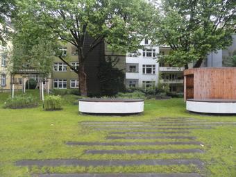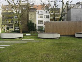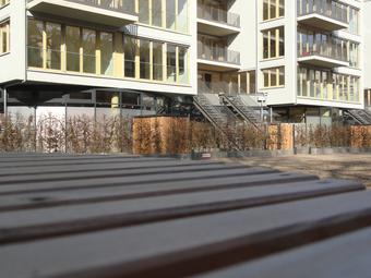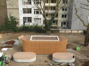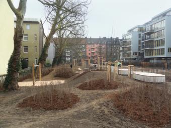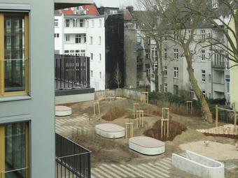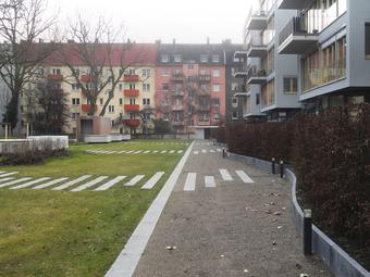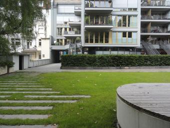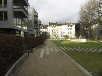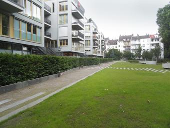 Die Albert Sevinc Planen und Bauen GmbH hat in der Lindemannstraße 6-8 den Neubau eines Wohn- und Geschäftshauses "Four Windows" mit straßen- und gartenseitigen Außenanlagen, die teilweise auf der Tiefgaragen- bzw. UG-Decke liegen, realisiert. Zur Auswahl des Freianlagenplaners wurde ein Wettbewerb vorgeschaltet.