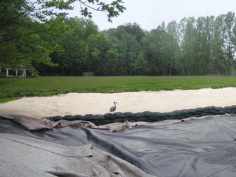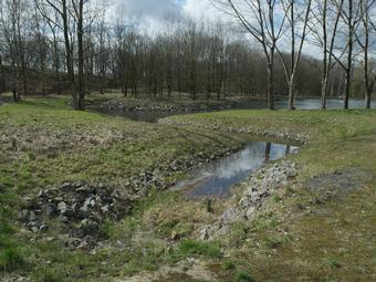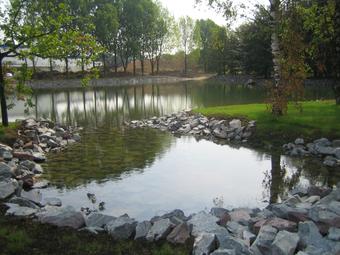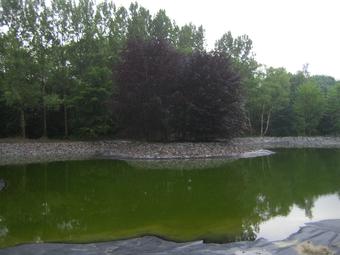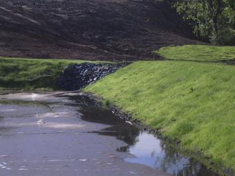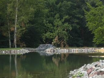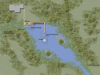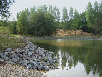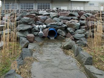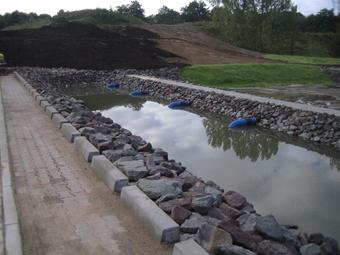 In offenen, das Betriebsgelände umlaufenden Rinnen wird ankommendes Regenwasser gesammelt und an einen Retentionsbodenfilter übergeben. Von dort gelangt das gereinigte Regenwasser in einen naturnah ausgeformten Teich. Wasserüberschuss wird über ein Drosselbauwerk in einen bestehenden Bach geleitet.