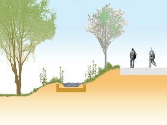 Landschaft planen + bauen erarbeitete die Umsetzung des Landschaftspflegerischen Begleitplanes sowie die Abkopplung des Regenwassers auf dem Firmengelände.