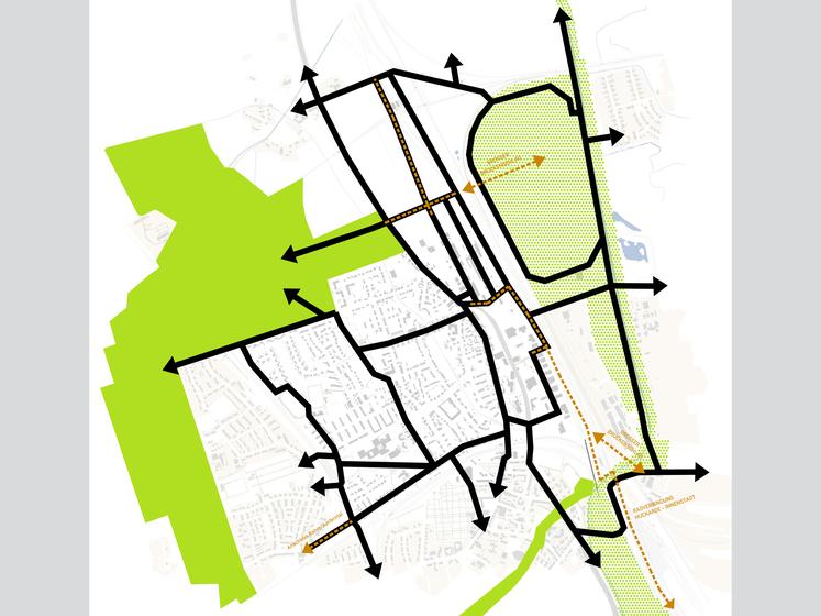 sowie die Definition von Flächen innerhalb des Stadtumbaugebietes, die im Sinne eines zusammenhängenden Freiraumkonzeptes zu integrieren und weiter zu qualifizieren sind.