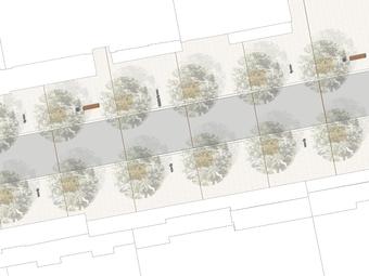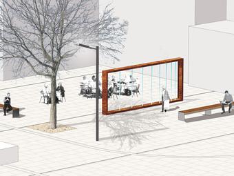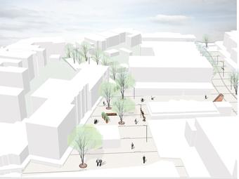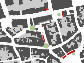 Wettbewerbsaufgabe war die Neugestaltung der Fußgängerzone(n) der Kamener Innenstadt. Der Beitrag von Lp+b thematisiert den Dialog "Altstadt" "Neustadt".
