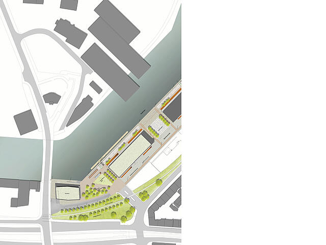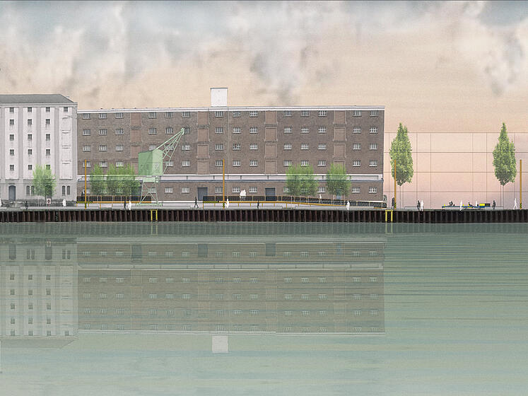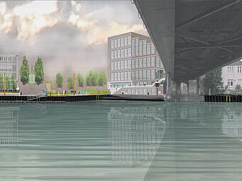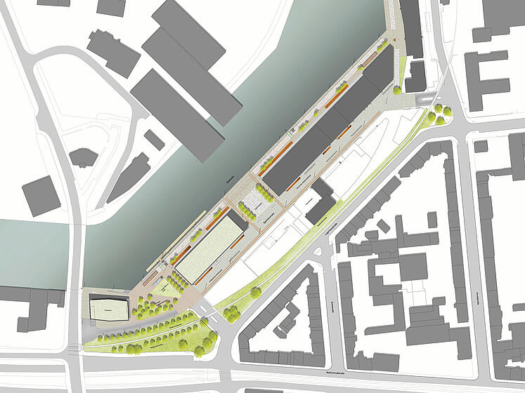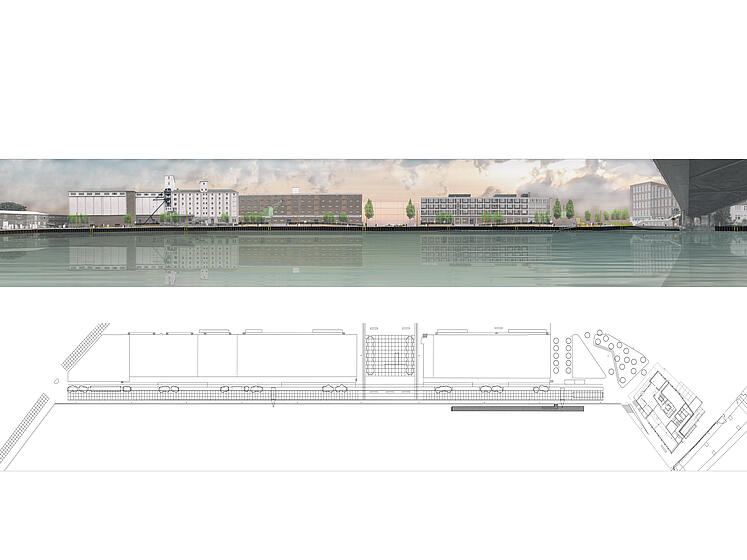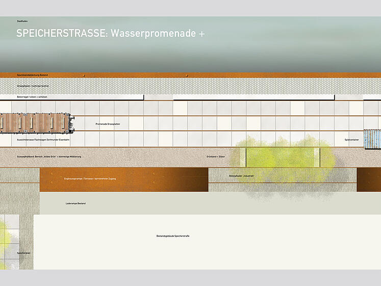 Der Dortmunder Speicherhafen mit den Erschließungslinien Lagerhausstraße, Speicherstraße und zukünftiger Hafenpromenade bildet das großräumliche Scharnier zwischen der Dortmunder Innenstadt, der Nordstadt und dem Kanalhafen. In Verbindung mit dem U-Bahn-Netz und der OWIIIa, einer der leistungsstärksten Verkehrsachsen der Stadt, bildet der östliche Schwerpunkt des Projektgebiets somit zugleich eine einzigartige städtebauliche Eingangssituation, die in der angedachten Entwicklung von Altem Hafenamt, Hafenbrücke und geplantem "Leuchtturm" ein neues Stadttor generieren wird, das alle Chancen hat, nach dem PHOENIXSee und dem Dortmunder "U" ein weiterer prägender Baustein in der überregionalen Wahrnehmung der Stadt zu werden.