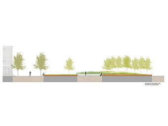 Leistungen: | Freianlagen nach HOAI 2013, Lph 1-9, Federführung der ARGE Speicherstraße mit FWT (Verkehrsanlagen), Mitwirkung Beteiligungsverfahren |