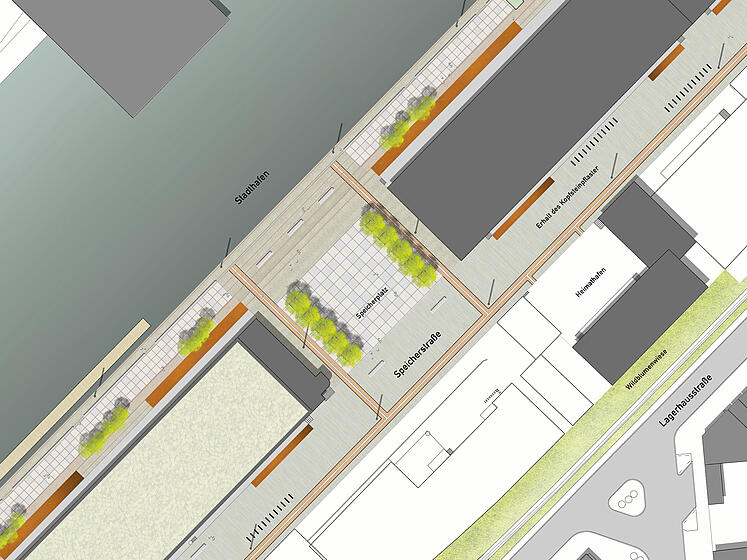 Besonderheiten: | 2025 bekam die Speicherstraße eine Auszeichnung beim Deutschen Städtebaupreis |