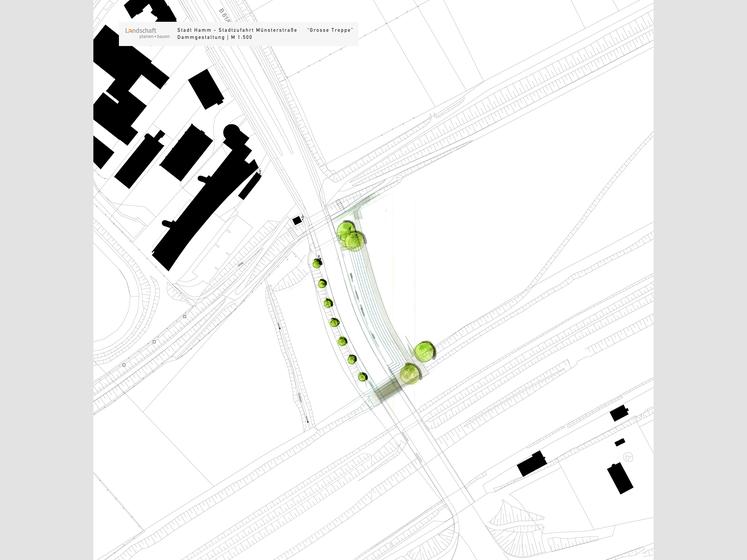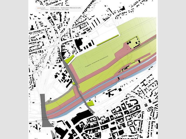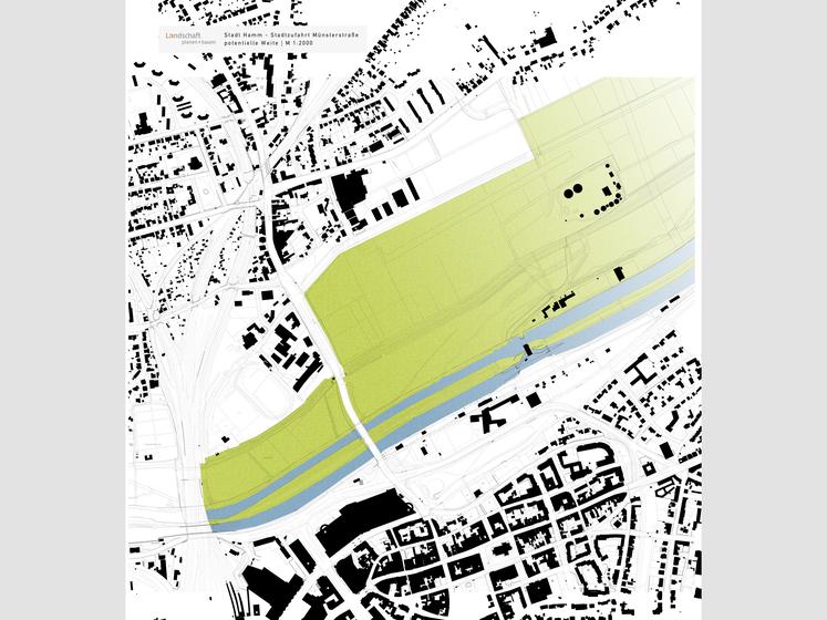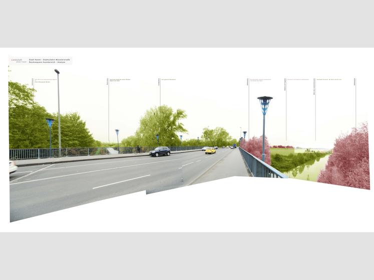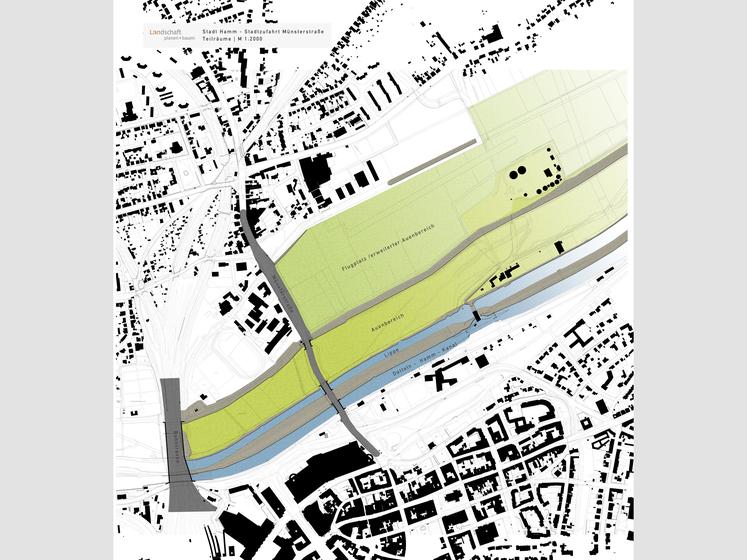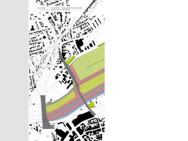 Seitens des Grünflächenamtes und des Stadtplanungsamtes wird in diesem Zusammenhang die Not-wendigkeit gesehen, auch den bisher nicht in diesem Konzept erfassten Bereich des nördlichen Stadteingangs B63 / Münsterstraße aufzuwerten. Dies betrifft aus landschaftsarchitektonisch / stadt-planerischer Sicht insbesondere den Abschnitt von der Einmündung der Seeburger Straße bis zur Kreuzung mit der Adenauerallee. Die Münsterstraße durchquert in diesem Abschnitt die Lippeauen und kreuzt die Lippe sowie den parallel geführten, durch einen Trenndamm von der Lippe abgesetz-ten Datteln-Hamm-Kanal.