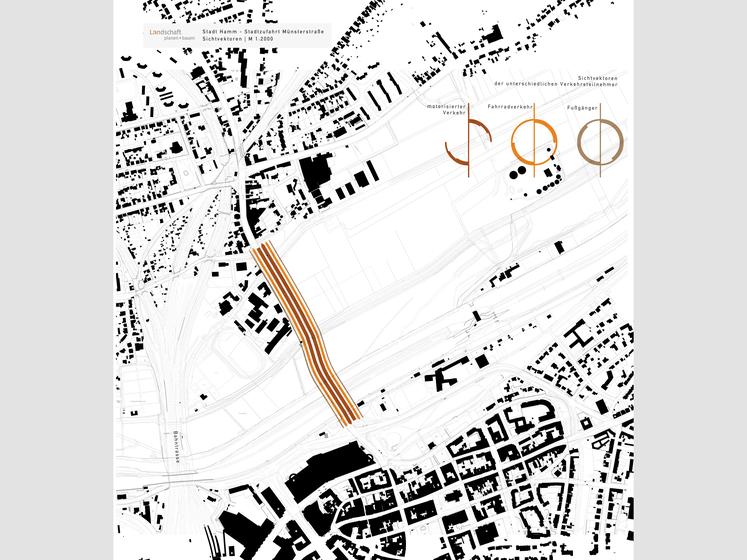 Ziel eines solchen landschaftsarchitektonisch / stadtplanerischen Eingriffs ist die nachhaltige Stär-kung der Wahrnehmung der Lippeaue aus Richtung der in Dammlage geführten Münsterstraße. In diesem Sinne soll das Leit- und Begleitgrün der Münsterstraße so umgestaltet werden, dass alle dort anzutreffenden Nutzer (Fußgänger / Spaziergänger, Radfahrer und Autofahrer) einen ihrem Frei-raumverhalten angepassten Eindruck dieses speziellen Landschaftsraumes erhalten. Die unterschiedlichen Fortbewegungsgeschwindigkeiten und die daraus resultierenden, teilweise nur fragmenthaft möglichen „Blicke in die Landschaft“ sind dabei zu berücksichtigen, genauso wie die Tatsache, dass die meisten Nutzer den Landschaftsraum heute in erster Linie zielorientiert (in Richtung / aus Richtung Innenstadt) durchqueren, einen Aufenthalt tendenziell nicht nachfragen.