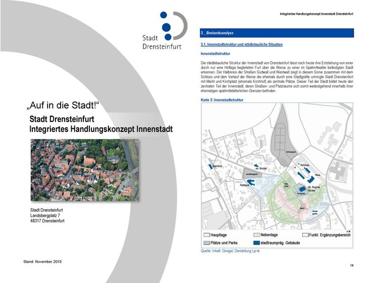 Leistungen: | Integriertes Handlungskonzept (IHK) für die Innenstadt von Drensteinfurt, Erstellen eines Förderantrags |