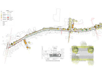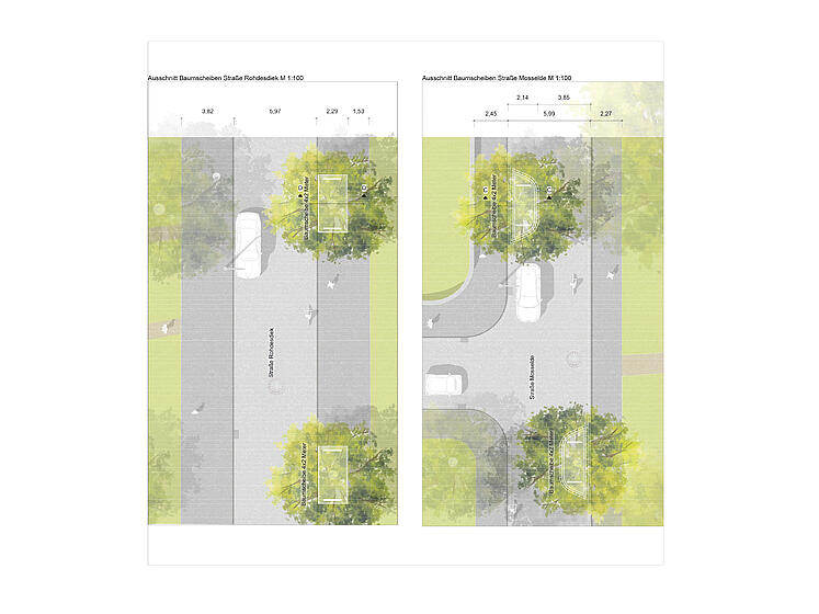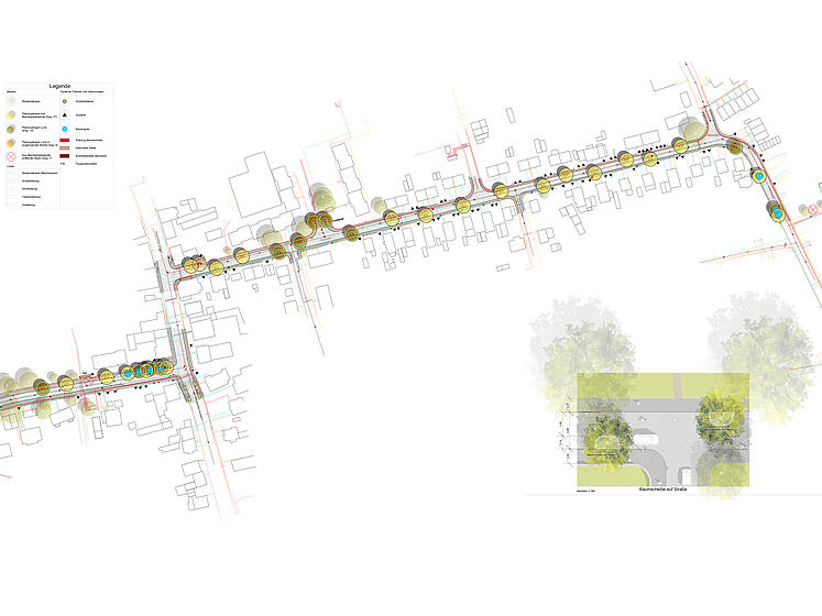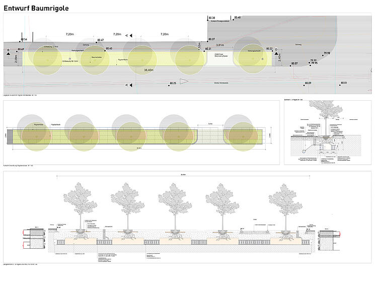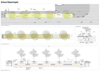 | Bauliche Besonderheiten: | Entwicklung von Baumrigolen mit Regenwassernutzung, -speicherung, Notüberlauf |