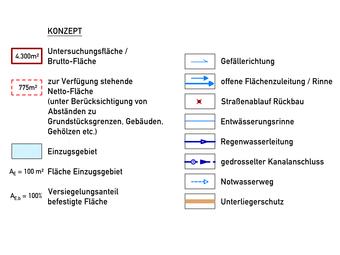 In Abkehr von einer möglichst schnellen Entsorgung des Niederschlagswassers, wie sie im 20. Jahrhundert noch erklärtes wasserwirtschaftliches Ziel war, steht eine ganzheitliche Betrachtung im Fokus, die neben der Überflutungsvorsorge auch Aspekte eines stabilen und vegetationsverfügbaren Grundwasserspiegels, die Entlastung von Unterliegern durch Verlangsamung und (temporäre) Rückhaltung des Abflusses sowie Schaffung mikro- bzw. stadtklimatischer Effekte durch Erhöhung der Verdunstungsraten und damit verbunden die Attraktivierung und nachhaltige Sicherung von Grünflächen. Anders als bei der herkömmlichen, zentralisiert ausgerichteten Entwässerung mit ihren auf hohe Abflüsse getrimmten unterirdischen Kanälen soll diesen überall in der Stadt verteilten Grünflächen zukünftig die Aufgabe zukommen, als "KlimaInseln" das Niederschlagswasser bereits da, wo es anfällt, nach den vorgenannten Kriterien unter Berücksichtigung der Versickerung und Verdunstung zu bewirtschaften.