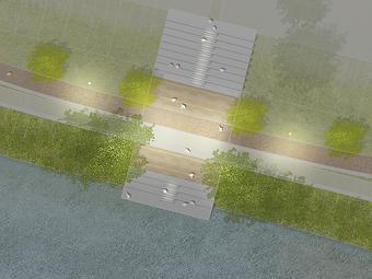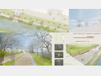 Der Entwurf "Stadt Land Fluss" verbindet die geplante Wohnsiedlung mit der Lippe, die städtischen mit den landschaftlichen Wegebeziehungen und urbane Bedürfnisse nach Aktivitäten im Freiraum mit den Ansprüchen der Gewässerökologie, ohne dass die unterschiedlichen Bedürfnisse nach Urbanität, Privatsphäre und Naturschutz verwässert werden. Vielmehr werden diese gestärkt und an definierten permeablen Punkten miteinander verbunden. Entwurfsbestandteile sind: