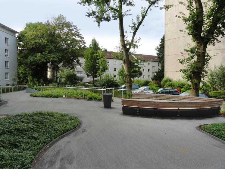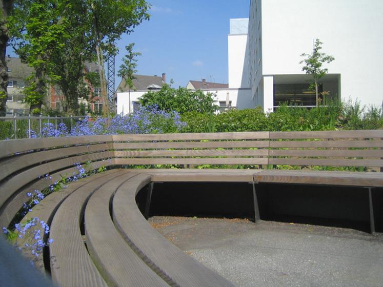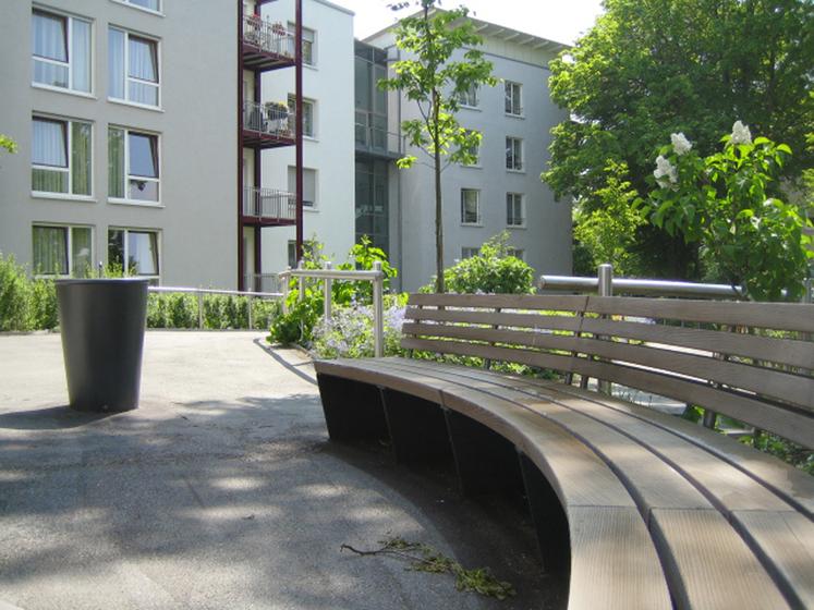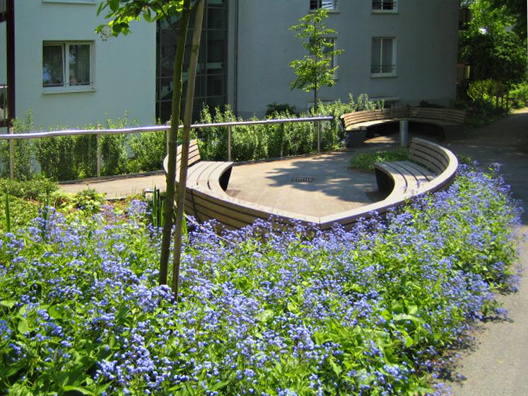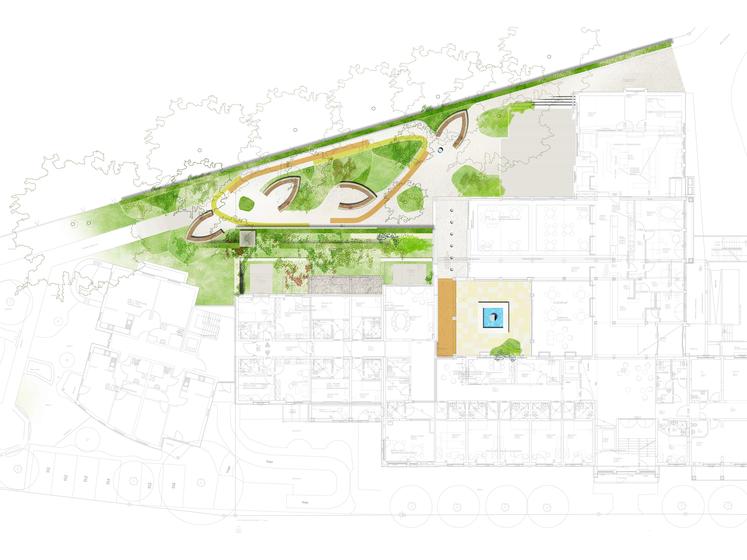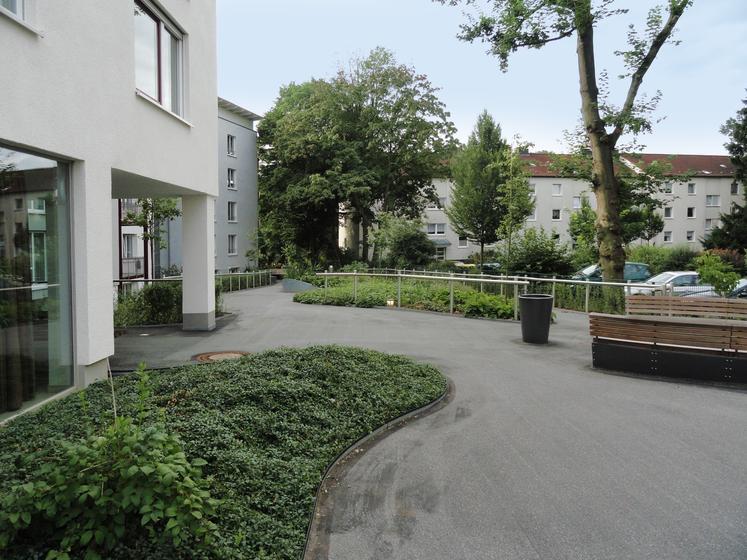Dabei wurde mit Blick auf die demenziell erkrankten Anwohner insbesondere die Erinnerung an frühere Lebensabschnitte angesprochen. In diesem Sinne sollten z.B. vertraute Gerüche bzw. Pflanzen integriert werden. Hinsichtlich der Verknüpfung mit weiteren Freiraumbereichen des Johannes-Mergenthaler-Haus bzw. den anschließenden Funktionsbereichen innerhalb des Gebäudes sind intensive Anbindungen vorgesehen, um die Nutzung des Gartens so einfach und selbstverständlich wie möglich zu machen. Weiterhin wurde es jedoch auch als notwendig erachtet, den Sinnesgarten als eigenständigen Bereich ggf. nach Bedarf abschließen zu können.