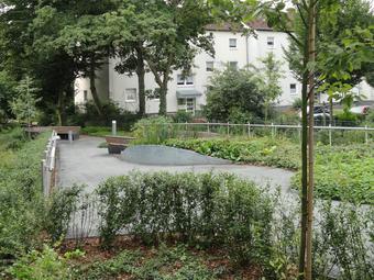 Dabei wurde mit Blick auf die demenziell erkrankten Anwohner insbesondere die Erinnerung an frühere Lebensabschnitte angesprochen. In diesem Sinne sollten z.B. vertraute Gerüche bzw. Pflanzen integriert werden. Hinsichtlich der Verknüpfung mit weiteren Freiraumbereichen des Johannes-Mergenthaler-Haus bzw. den anschließenden Funktionsbereichen innerhalb des Gebäudes sind intensive Anbindungen vorgesehen, um die Nutzung des Gartens so einfach und selbstverständlich wie möglich zu machen. Weiterhin wurde es jedoch auch als notwendig erachtet, den Sinnesgarten als eigenständigen Bereich ggf. nach Bedarf abschließen zu können.