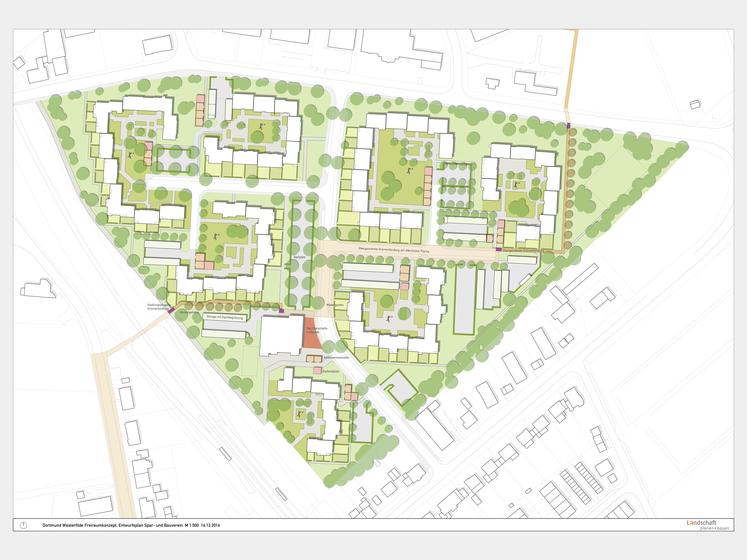 Für die „in die Jahre“ gekommenen Großwohnanlagen im Dortmunder Stadtbezirk Westerfilde läuft seit 2014 ein Stadterneuerungsprozess, an dem die betroffenen Wohnungsbaugesellschaften, die Stadt Dortmund und das hierzu eingerichtete Quartiersmanagement beteiligt sind. Wesentlicher Baustein der Steinerneuerung ist das von Lp+b erarbeitete siedlungsübergreifende Freiraum-Rahmenkonzept.