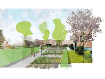 Wesentliche Idee des Konzeptes ist der "Stadtteil der 1000 Gärten", d.h., es wurde vorgeschlagen, große Bereiche der Freiräume in von Mietern genutzte Gärten umzuwandeln. Hierzu wurde im Rahmen einer Exkursion auf die Erfahrungen einer vergleichbaren Großsiedlung in Monheim zurückgegriffen.
