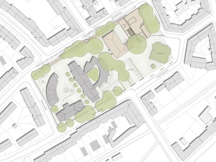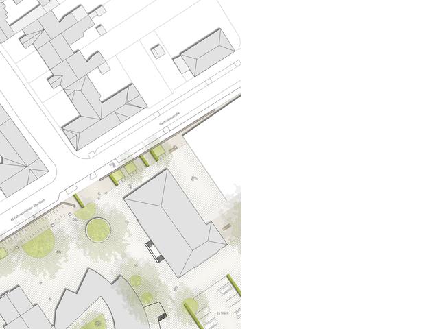 Leistungen: | Wettbewerbsbeitrag Freianlagen / Schulhof in Zusammenarbeit mit Schamp und Schmalöer Architekten, die den Neubau entworfen haben. |