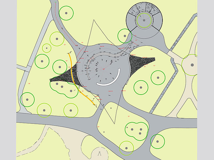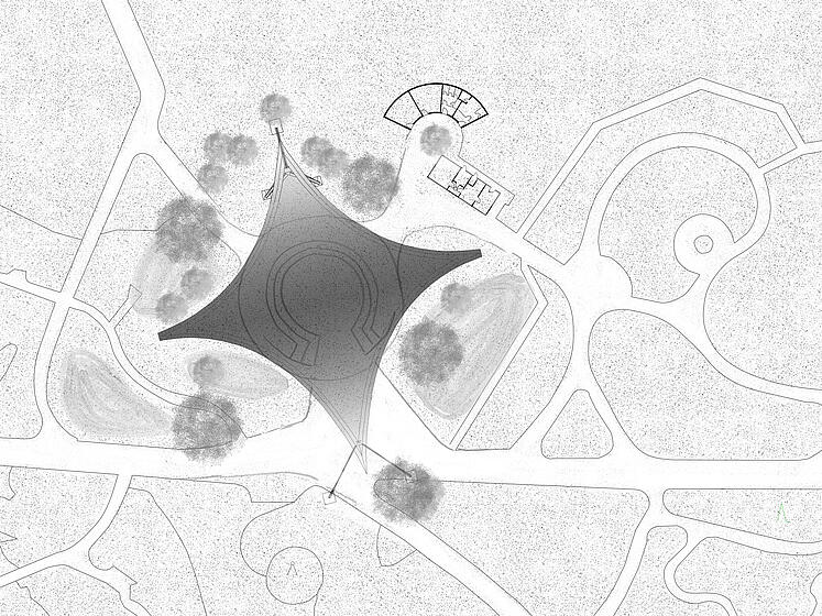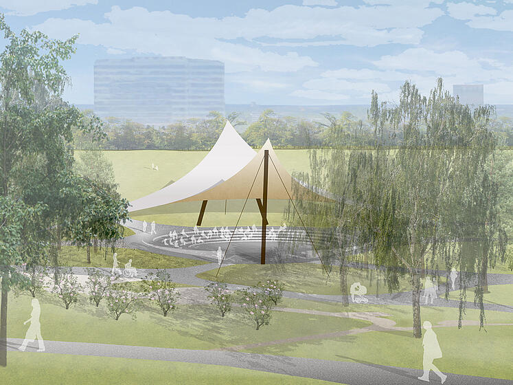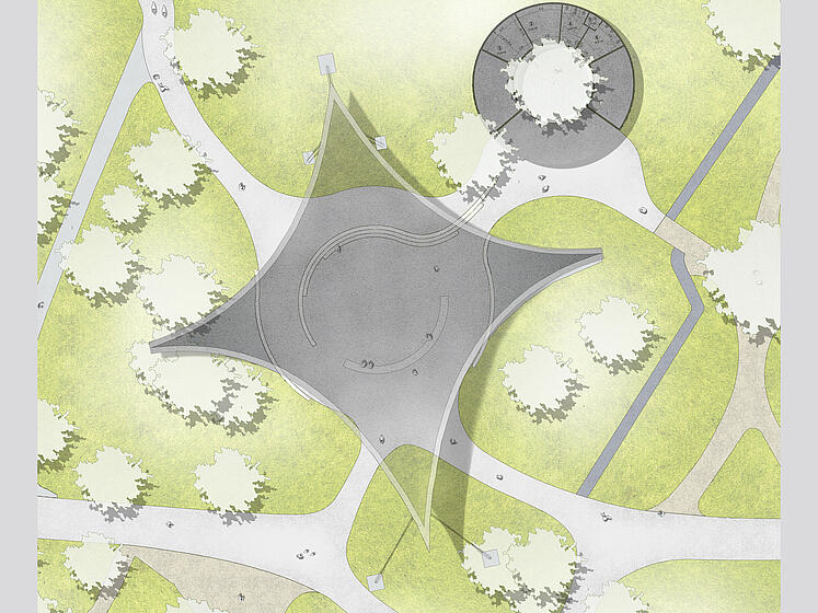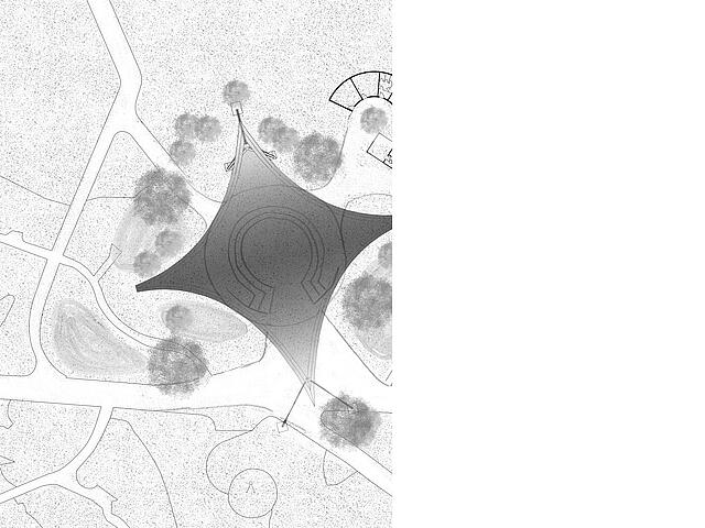 Neugestaltung des Bühnen- und Begegnungsortes unter dem Sonnensegel, Freianlagen nach HOAI 2013, Lph 1-5, dann Projektende.