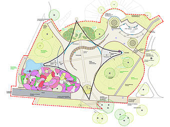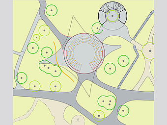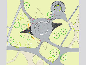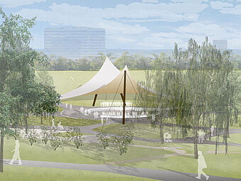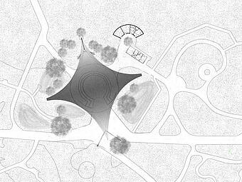 Neugestaltung des Bühnen- und Begegnungsortes unter dem Sonnensegel, Freianlagen nach HOAI 2013, Lph 1-5, dann Projektende.
