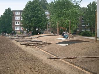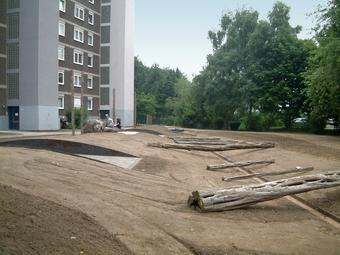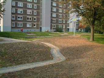 Nach Vorlage eines Entwurfs für den gesamten wurden im Zuge von 2 Bauabschnitten unter Zuhilfenahme beantragter Fördermittel des Landes der gesamte Freiflächenbestand des Spar- und Bauvereins in Dortmund-Scharnhorst vollständig erneuert.