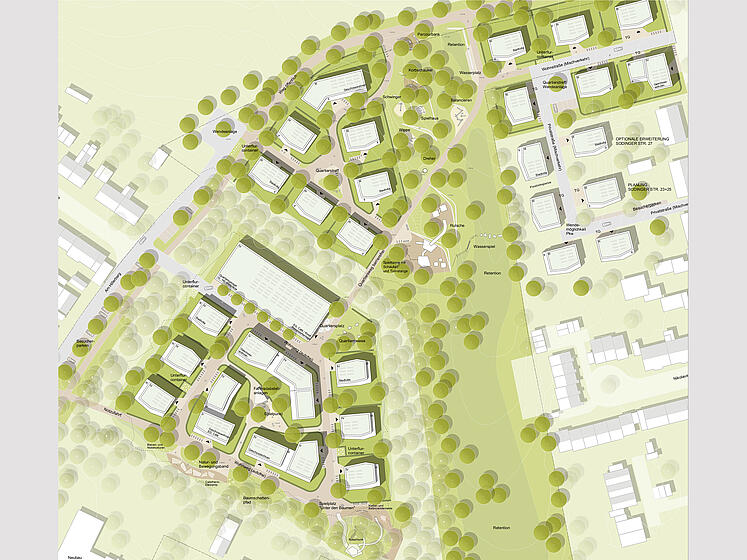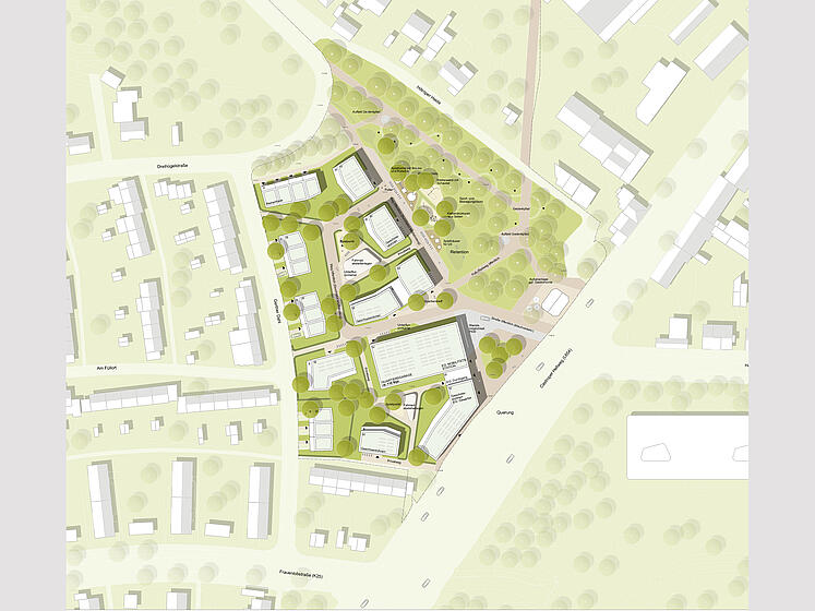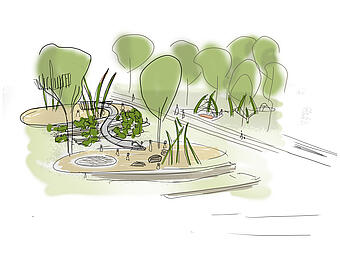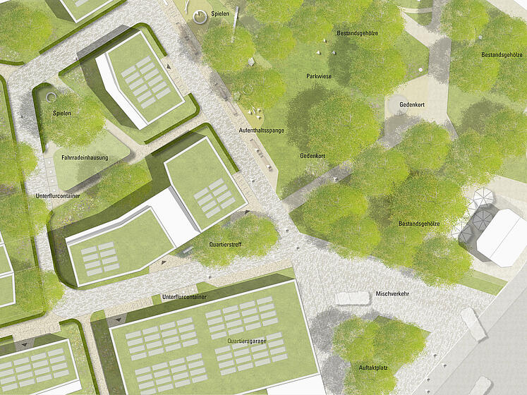 | Leistungen: | Freianlagen nach HOAI, Lp 1-9, ARGE mit Pesch & Partner: städtebaulicher Entwurf | |