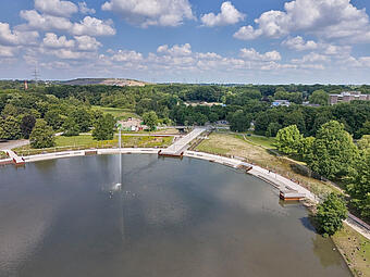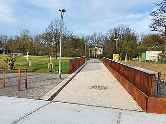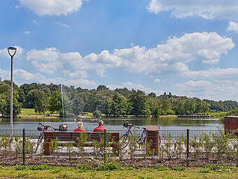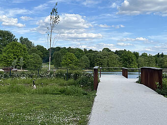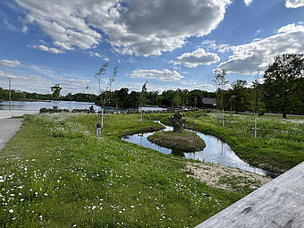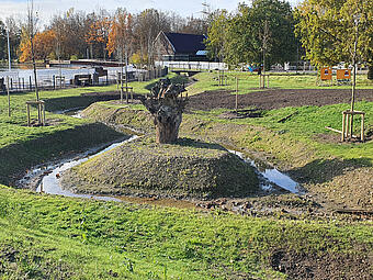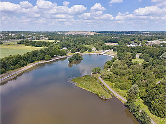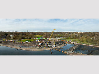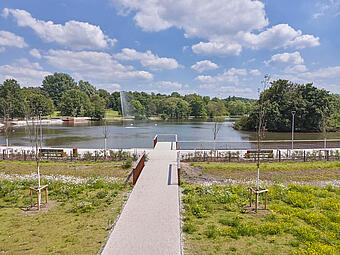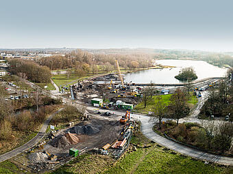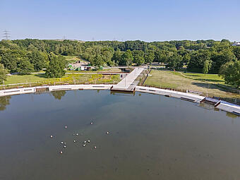 Herstellen einer neuen Uferkante, Integration von Ingenieurbauwerken unter fließender Welle, Ökologische Verbesserung des Harpener Baches (Entkopplung vom See)