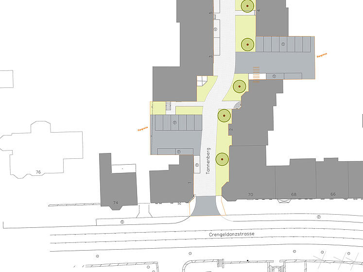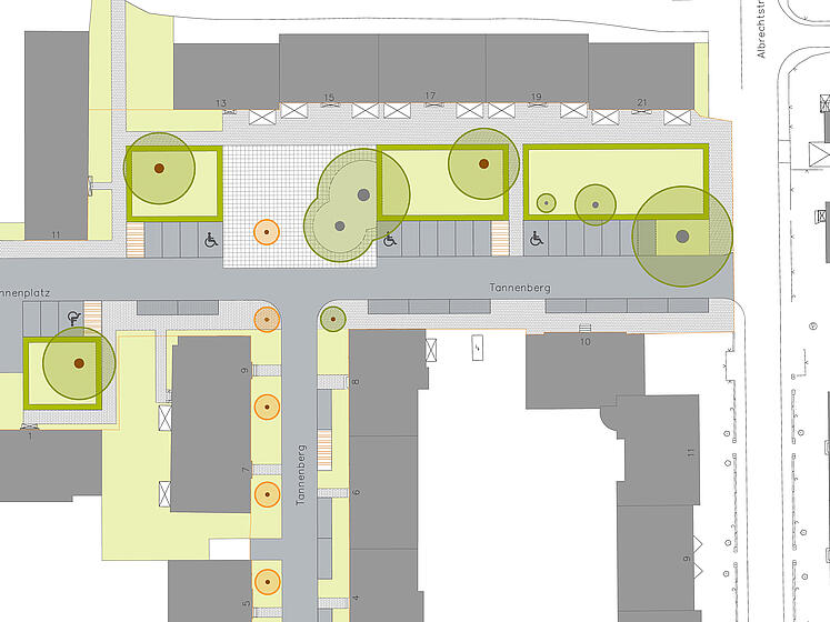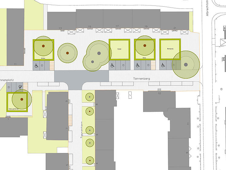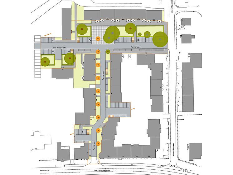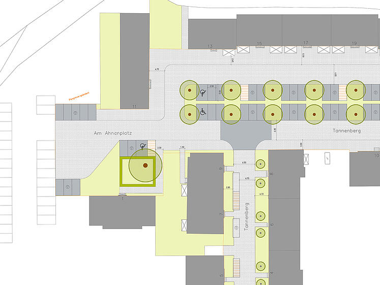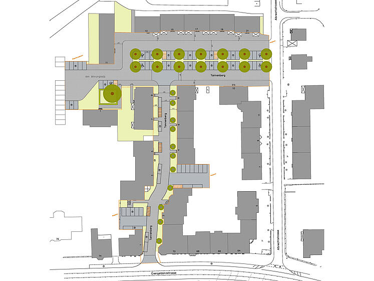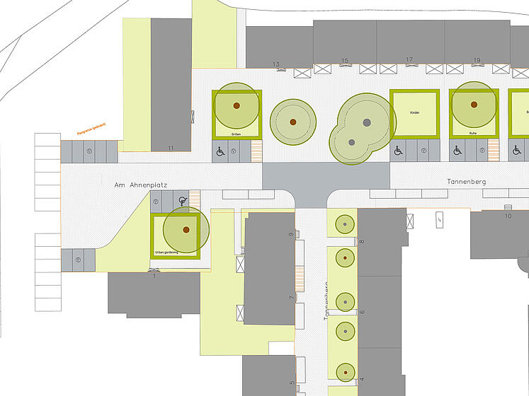 Die Wohnungsgenossenschaft Witten-Mitte eG und die Stadt Witten haben sich darauf verständigt, den öffentlichen Straßenraum sowie die zwar privaten, jedoch (halb-) öffentlich wahrgenommenen Vorgartenzonen der Wohngebäude inkl. der bis ca. zur Gebäudeachse reichenden sonstigen Freiflächen der Straßen Tannenberg und Am Ahnenplatz einem ganzheitlichen Entwurfsprozess zu unterziehen, der eine Neuordnung des Straßen- und Platzraums ermöglicht.