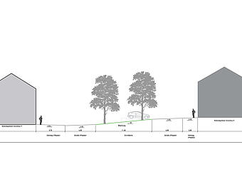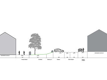 - die barrierefreie und geschwindigkeitsreduzierende Integration des fließenden Verkehrs in das Umfeld